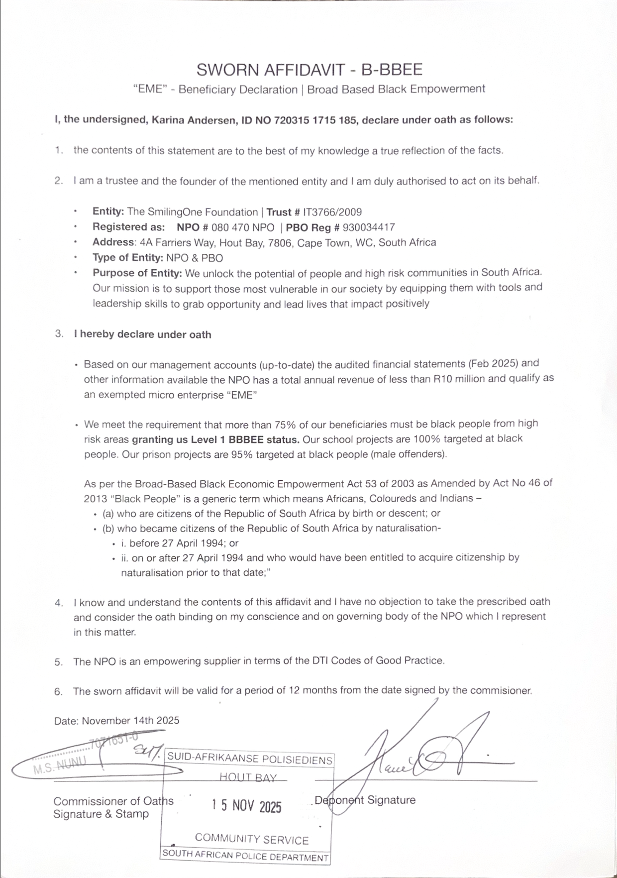 For 18 years, The SmilingOne Foundation has operated in South Africa’s most complex human environments - maximum-security prisons (since 2008) and schools in high-risk areas (since 2016) - transforming individuals and cultures through deep, values-based leadership development.